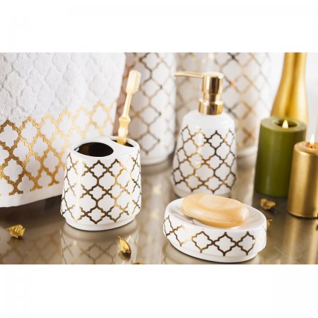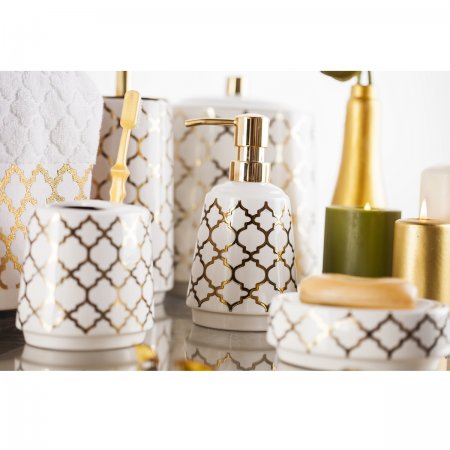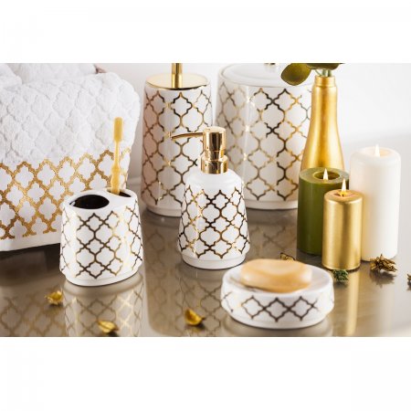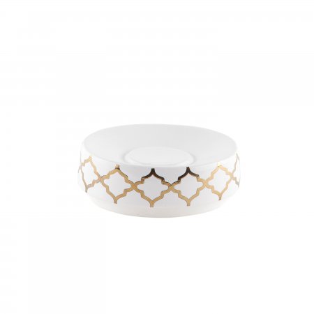 این محصول سرامیکی بوده و با آب طلا روی زمینه سفید تزیین شده است.